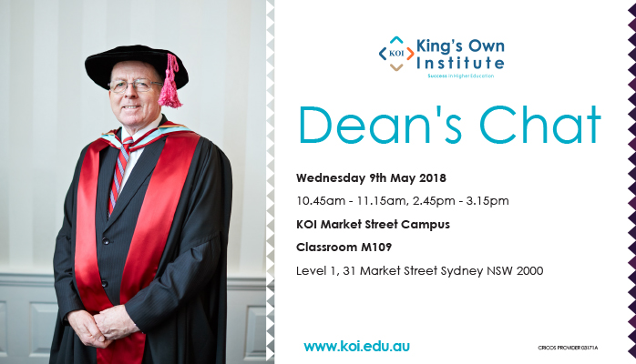 We would like to hear from you. Please, join “Dean’s Chat” tomorrow at Market St (Level 1, 31 Market St Sydney).